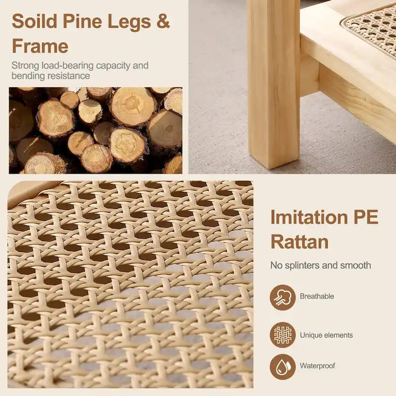 - Material: Premium MDF + Pine Wood + PE Imitated Rattan