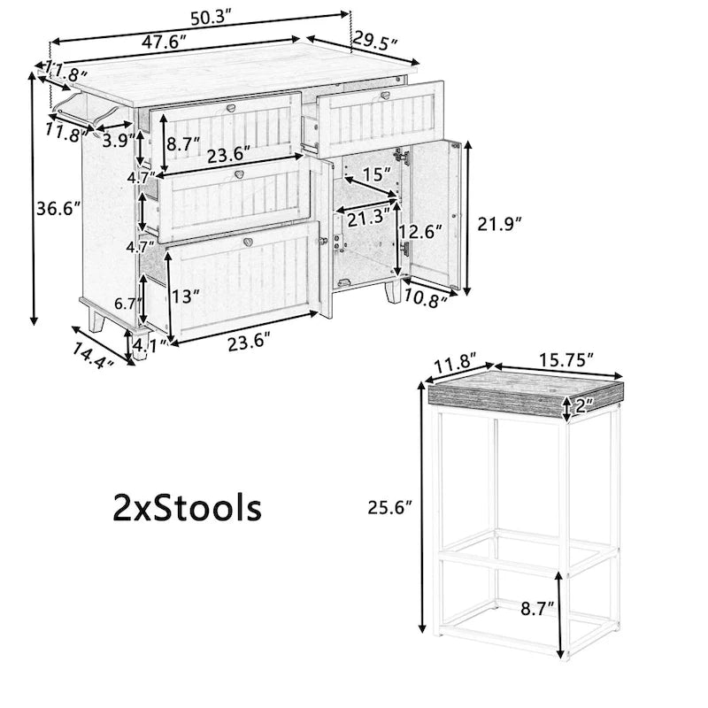 - Kitchen Island Size: 50.3 x (17.7-29.5) x 36.6 inches (L x W x H)
