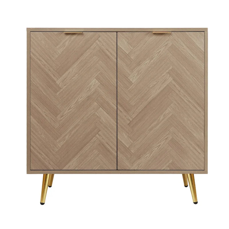 Unique herringbone pattern and natural oak finish with gold metal hardware for a modern chic style