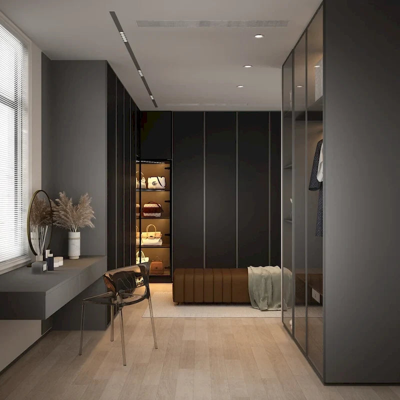 - SLEEK BLACK GLASS DOORS: Both wardrobes are designed with black glass doors, giving a contemporary and chic look.