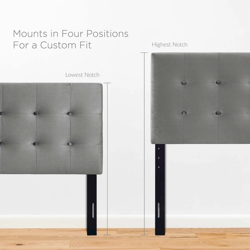 Add a touch of timeless elegance to your bedroom with the Carson Carrington Labbgard Queen Tufted Velvet Headboard. This headboard features charming button tufting that exudes vintage glamour and classic appeal, while its plush velvet upholstery provides a luxurious feel. Relax, read or converse in bed with the soft and stain-resistant fabric of this queen size headboard. Constructed with plywood and fiberboard, and equipped with dense foam padding, this headboard is built to last. It comes with five mounting positions that are adjustable in height from 45' - 52.5', making it easy to fit onto any queen bed frame.