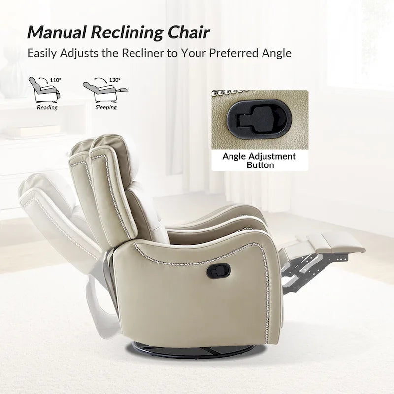 FrancoModern Genuine Leather Swivel Rocker Recliner with Nailhead Trims by HULALA HOME