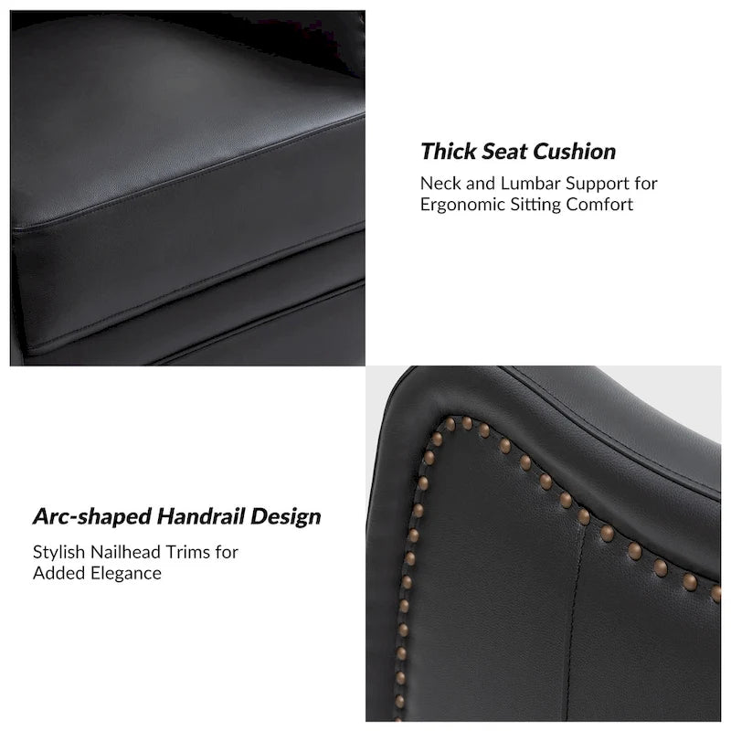 - Contemporary Style: With its sleek design, wingback, and nailhead trims, it effortlessly combines modern simplicity with timeless elegance. It is perfect for various settings, such as the living room, study, bedroom, or office.