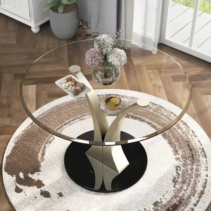 Update your dining area with this contemporary dining table from the Furniture of America Zaia collection. This strikingly elegant dining table features a gorgeous V-shaped pedestal base with a modern geometric look that lends a futuristic vibe. With a two-tone finish, the pedestal offers a shiny satin plated powder coated finish that is contrasted by a dark black flat base support. In addition, this table features a spacious round tabletop made of tempered glass with a beveled edge that lends a softness to the overall design. Inspired by iconic modern art, this table is part of a larger collection, which also offers matching dining chairs to complete your dining space.