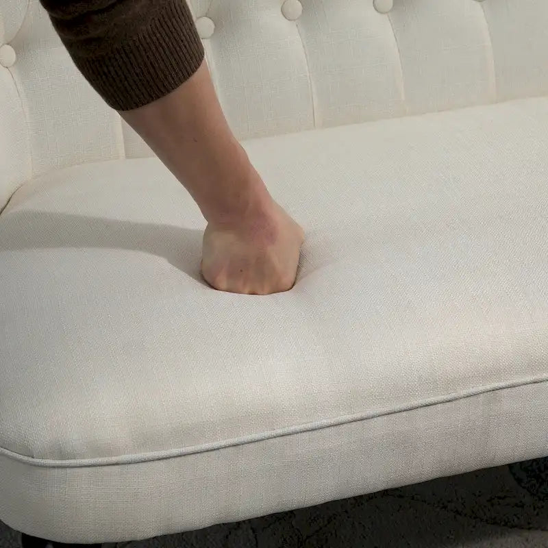 Sink into something comfortable without sacrificing your home or office space with this sofa couch from HOMCOM. The two-seater sofa design makes it a great spot for watching television with a friend or even catching some well-deserved rest by yourself. The attractive curved backrest with button-tufted details adds a hint of style and sophistication. Two beautifully carved legs enhance its visual appeal. This two-seater sofa features breathable fabric for easy maintenance and thick sponge padding upholstery for exceptional sitting comfort.