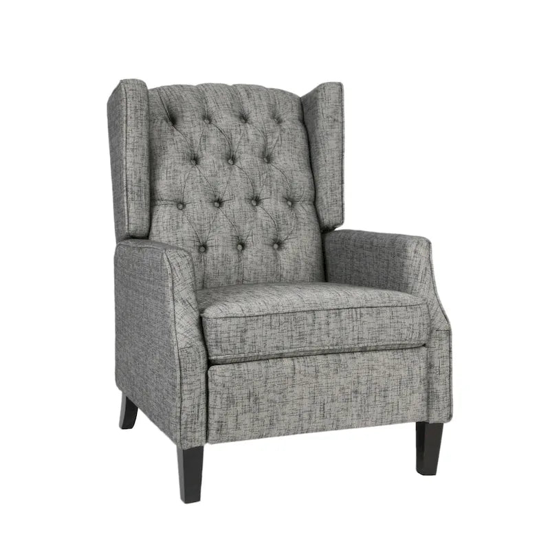 Add bold style to your space with this beautiful Keating recliner from Christopher Knight Home. The recliner features a traditional wingback design, with narrow arms and a compact design that allows it to fit easily into smaller spaces. The durable polyester upholstery is embellished with diamond-stitched button tufting, completing the traditional charm of this eye-catching chair.