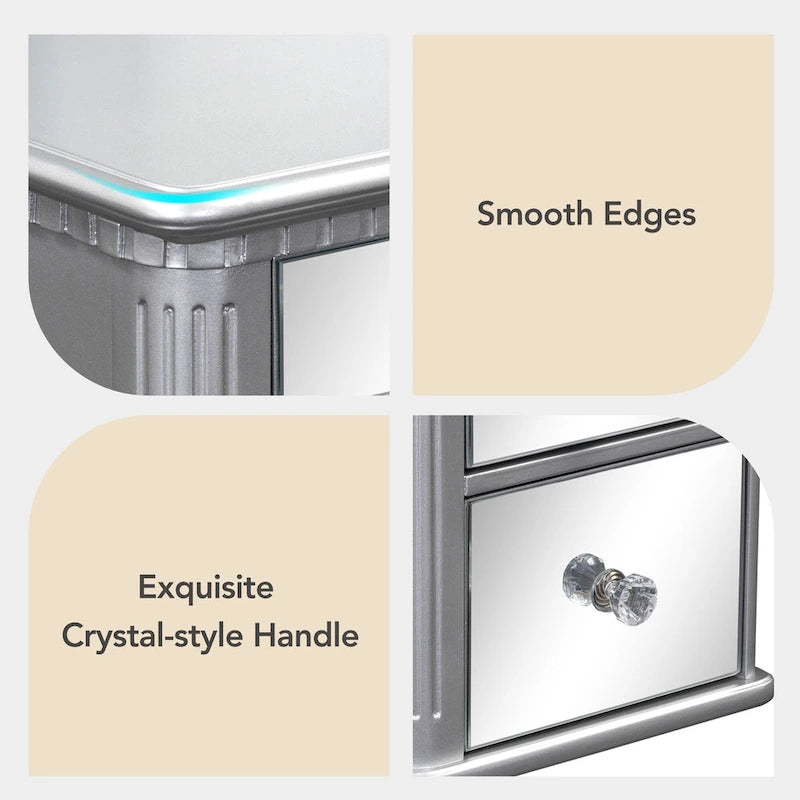 French-Inspired Design: This dressing table features a sophisticated mirror surface on the drawer fronts, blending high-end modern style with classic French elegance for a truly immersive experience.