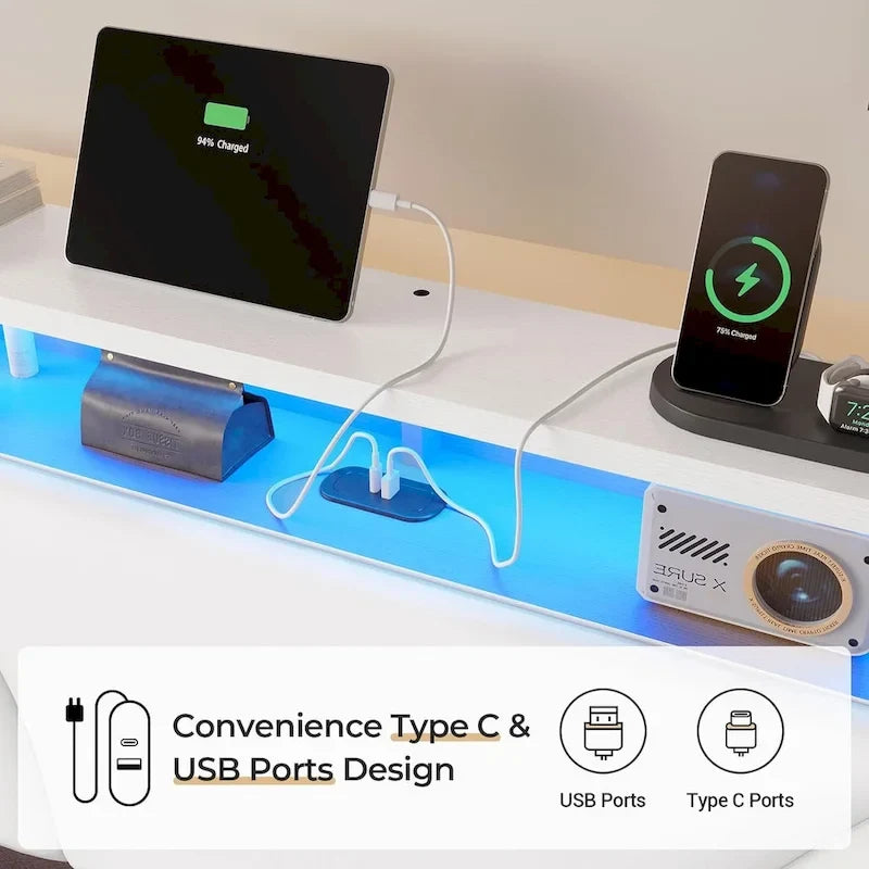 - Storage Headboard with Charging StationThis upholstered headboard of queen Led bed frame with open storage shelves and large hidden private storage space, allowing for easy storage of your magazines, books, phones, photos and decorations or some odds. Led headboard built-in outlets, includes 1 Type-C and 1 USB port, which is very convenient for you to charge your mobile phone, pad and other electronic devices, making your life more comfortable and convenient.