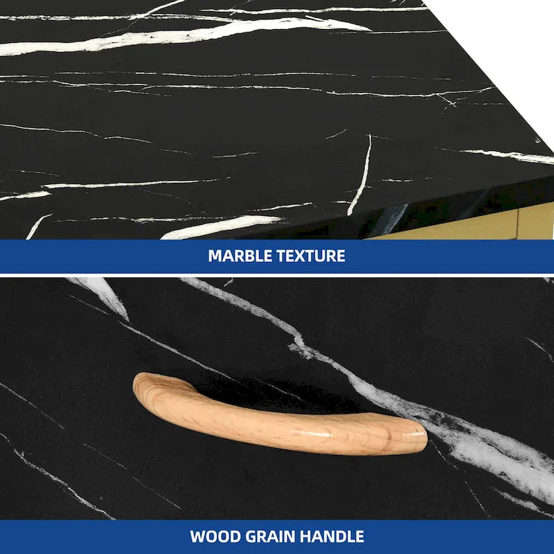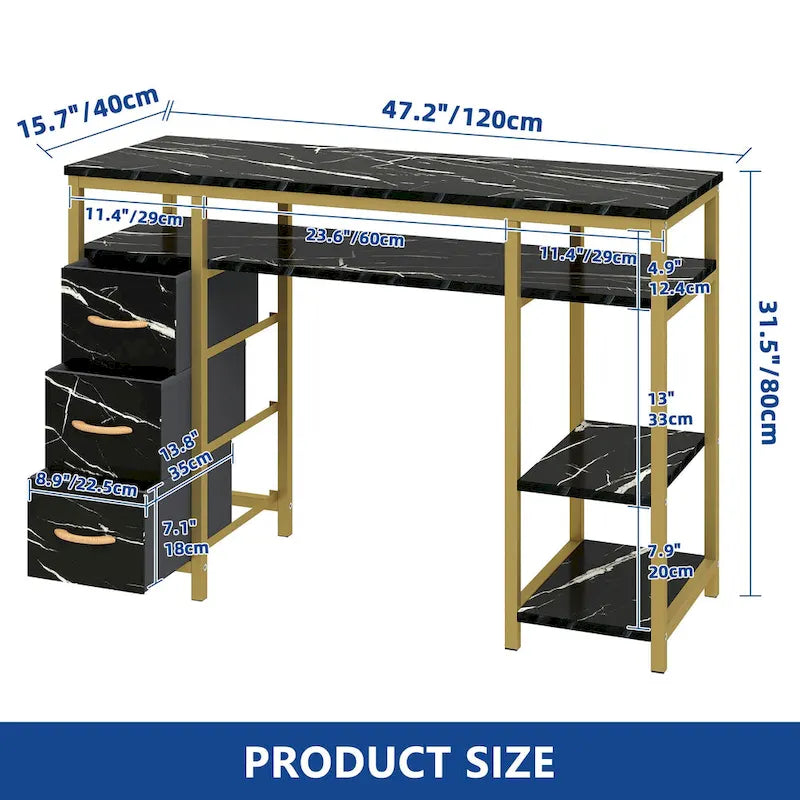 Elevate your nail care experience with this stylish and durable manicure table crafted from engineered wood. The tabletop features a white marble veneer, exuding a fresh, natural, and fashionable ambiance. The golden metal frame adds a touch of luxury while providing stability and sturdiness. Equipped with three fabric drawers, it offers convenient storage space for organizing your nail tools and materials, keeping your workspace tidy and orderly. Moreover, this versatile manicure table can also serve as a makeup vanity, dressing table, or office desk, expanding its functionality beyond nail care.