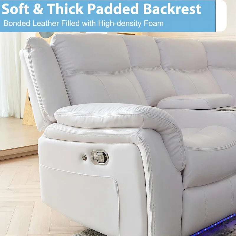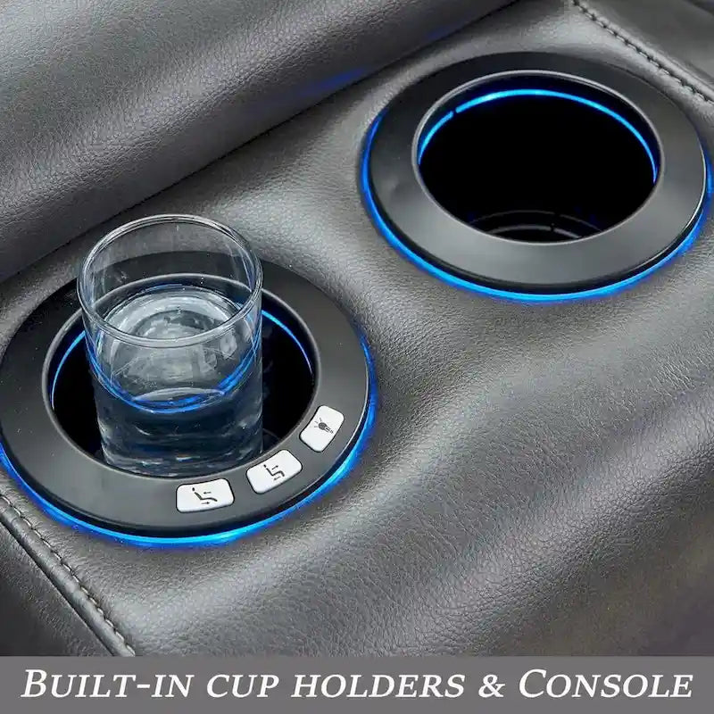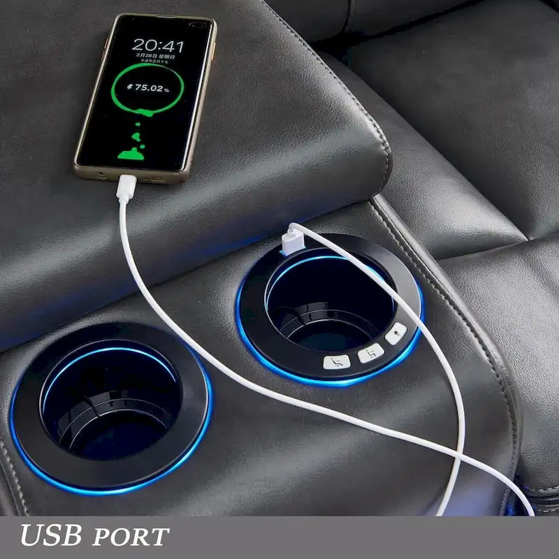 Material and DesignThe manual reclining sectional is upholstered in faux leather, featuring a classic backrest design. The two end seats are equipped with manual recliners for personalized comfort. Additionally, it boasts four cup holders, two hidden storage consoles, two USB ports, and LED ambient lighting for enhanced ambiance.