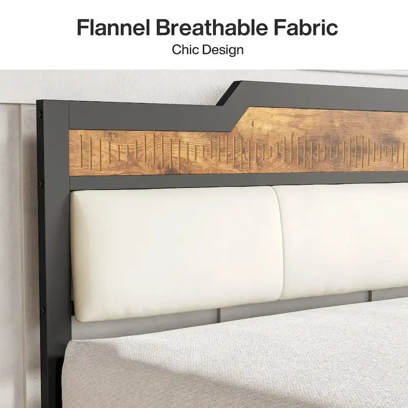 Festooned in an industrial chic design, this robust queen bed frame is built using sturdy metal construction capable of supporting up to 800 lbs. Its stylish fusion of a rustic wooden head and footboard and a modern black metal frame gives off a contemporary industrial appeal. Perfectly balancing trendiness and practicality, it's a great fit for your bedroom.