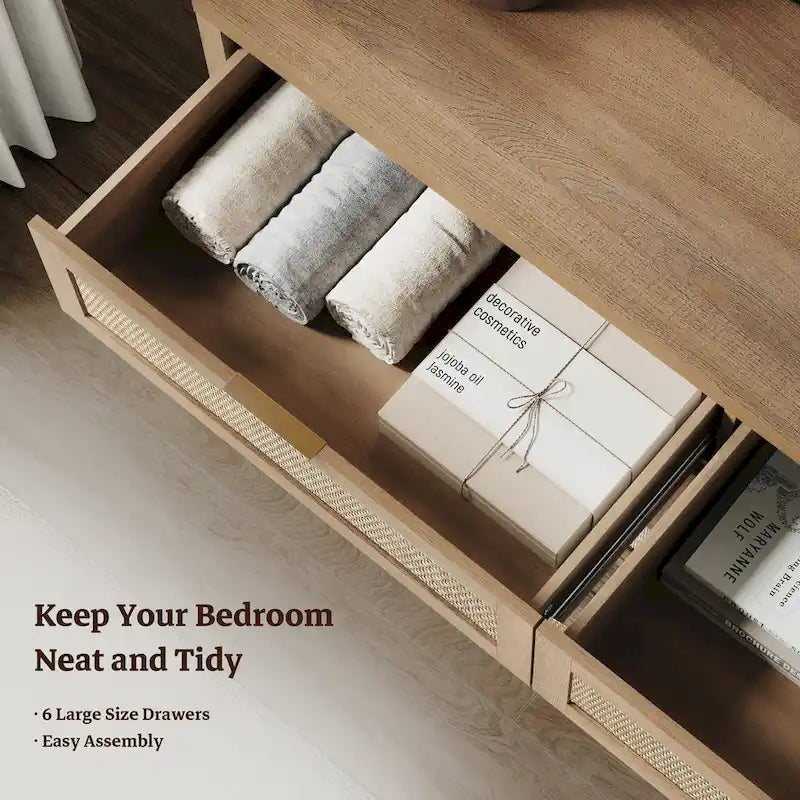 Set of 2 Elegant Right Angled Dresser with 6 Rattan Woven Drawers
