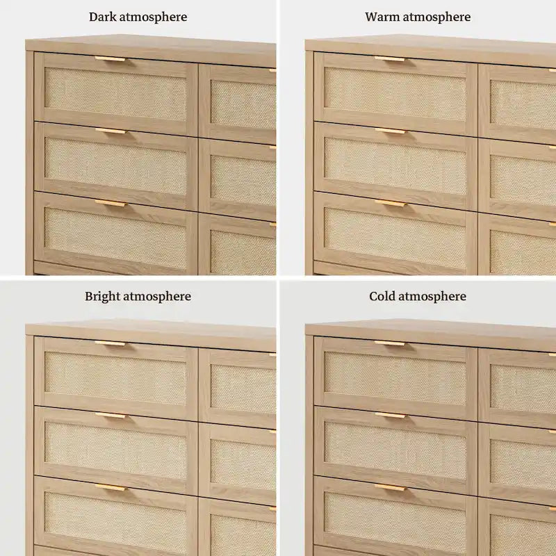 Detail CraftsmanshipThe rattan - weaving is exquisite, combining aesthetics and practicality. The ball - bearing slides and industrial - style casters are of high quality, ensuring long - lasting durability. The hidden golden handles prevent bumps, and the exquisite craftsmanship reflects quality in every detail.