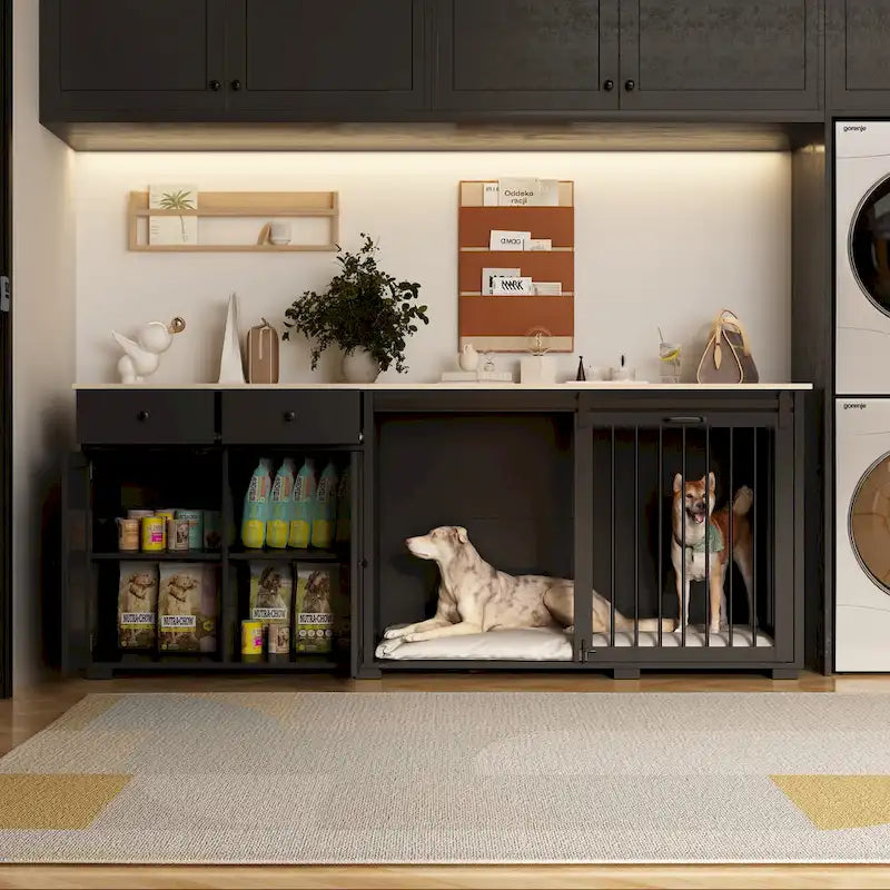 Storage Sideboard with Pet House Modern Home Essential in Black/White