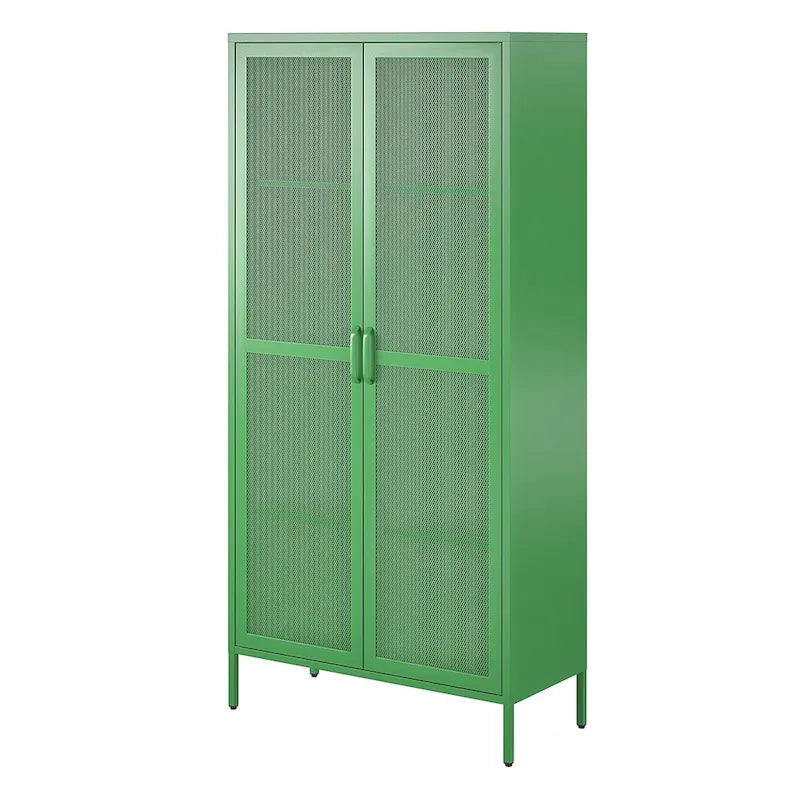 Storage just got a stylish makeover with the Channing Collection by The Novogratz. Store and stack your way to a more organized living space. The gorgeous Tall Metal 2 Door Storage Cabinet is a throwback on the metal locker design with added modern mesh doors to discreetly store books, games, pantry items and so much more. The Channing collection offers both fun and funky color options for your unique living space. Constructed from powder coated metal, the Tall Storage Cabinet is fitting for the bedroom, guestroom, bathroom, entryway, kitchen, laundry room, living room, den or really any room in the house! The Cabinet ships flat in one box and requires minimal assembly. Two adults are recommended to assemble. Once assembled, the Storage Cabinet measures to be 35.38 W x 15.75 D x 72.83 H.