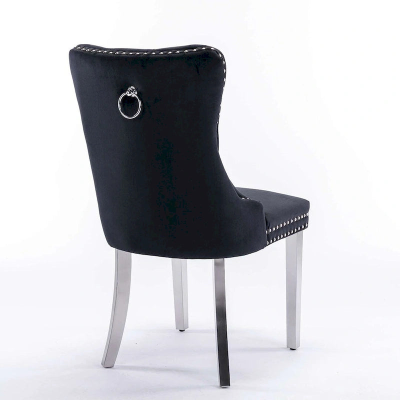 Upgrade your dining room with the High-end Tufted Solid Wood Contemporary Velvet Upholstered Dining Chairs. Available in a set of two, these chairs feature a modern design with a touch of traditional elegance. They are upholstered in high-quality velvet and supported by a sturdy solid wood structure. offering a stunning contrast while ensuring stability. Accentuated with nailhead trim and tufted details, these chairs are a stylish addition to any home decor.