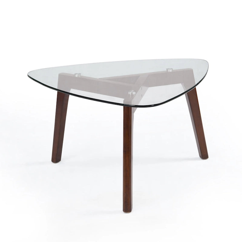 Set your living room decor around an eye-catching centerpiece of carefully crafted design. Built with clean lines and a simple triangular structure, our coffee table offers a beautiful combination of glass and sturdy solid wood to create a table worthy of the most sophisticated. This table offers a stunning mid-century modern look with its iconic splayed legs that add a luxurious atmosphere to any space. With a perfectly balanced structure, your interior decor will never be the same with this delightful coffee table.